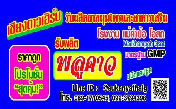 โรงงานเชียงดาวเฮิร์บ โรงงานผ่านการรับรองมาตรฐาน GMP รับผลิตและจัดจำหน่าย อาหารเสริมพลูคาว และยังเป็นหน่วยงานวิจัยอาหารเสริมสมุนไพรโดยเฉพาะ ที่สามารถรับรองได้ถึงประสิทธิภาพยาสมุนไพรจากโรงงาน เราจึงผู้เชี่ยวชาญที่จะคอยให้คำปรึกษาแก่คุณ นอกจากการจัดจำหน่ายยาสมุนไพรแล้ว เรายังรับผลิตสมุนไพรราคาส่ง พร้อมให้คำปรึกษาในทุกขั้นตอนการเริ่มต้นธุรกิจ ติดต่อโรงงานของเราได้เลย โดยตรง